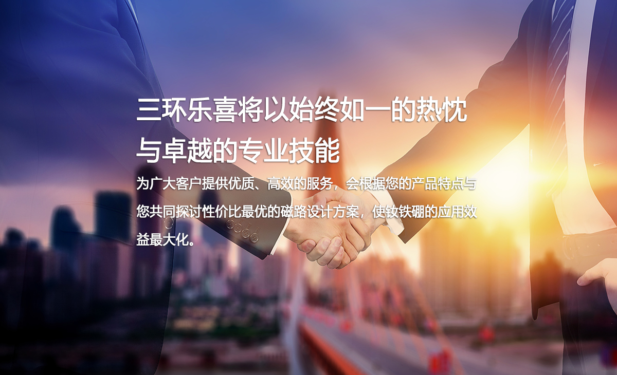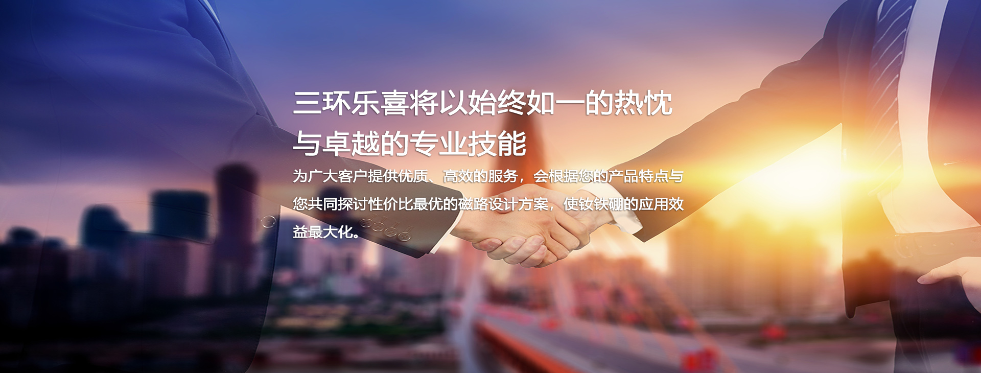三環樂喜新材料有限公司,成立于1990年,控股股東中科三環(股票代碼:000970)爲中國稀土永磁材料産業的代表企業、全球特大的钕鐵硼永磁體制造商之一。自成立以來,公司一直緻力于研發、生産、銷售中、高品質燒結钕鐵硼,年生産能力超過6000噸,是中科三環的重要生産基地。